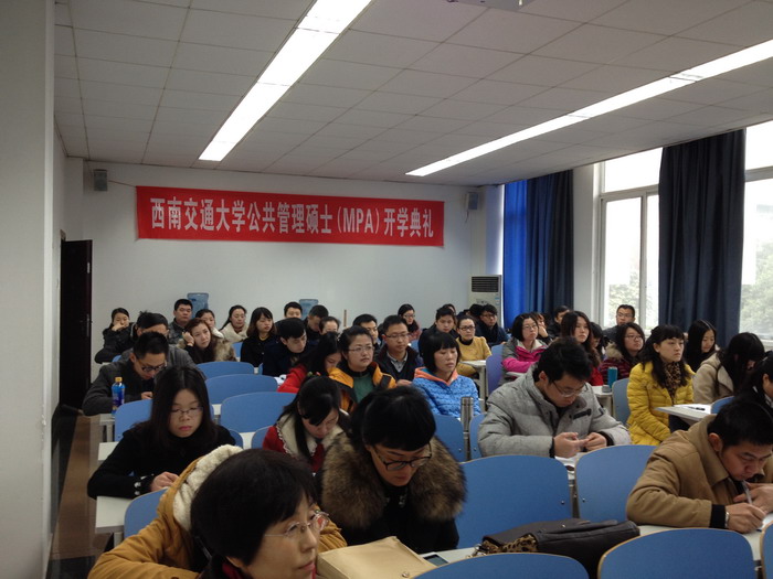 2014年3月8日上午,公共管理学院2013级公共管理硕士(MPA)开学典礼在逸夫馆4104教室隆重举行。公共管理学院党委书记刘斌、院长陈光、MPA教育中心主任雷叙川以及中心全体工作人员出席了典礼。近60名在职攻读公共管理硕士学位的新生参加了开学典礼。典礼由MPA教育中心主任雷叙川主持。