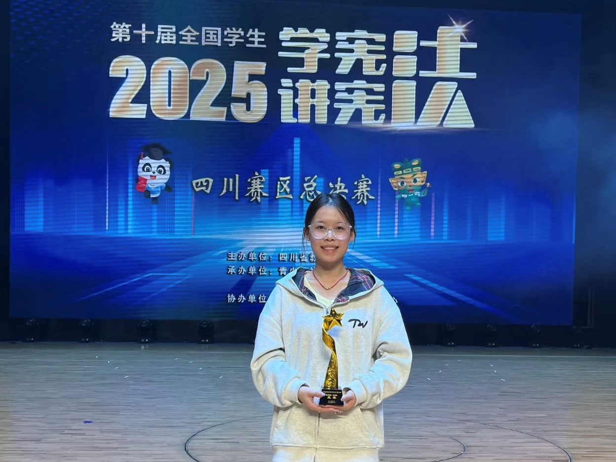 10月26日至10月28日,第十届全国学生“学宪法讲宪法”活动四川赛区总决赛在四川轻化工大学举行。本次大赛由四川省教育厅主办,青少年法治教育中心承办,设法治素养竞赛和演讲比赛两大项目,按学龄段分为小学、初中、高中和高校四个组别。经过覆盖全省139所高校的24个片区赛及各市(州)初赛的层层选拔,共有176名优秀选手晋级省级决赛。在学校校长办公室和公共管理学院党委的高度重视和精心安排下,张晶老师带领学院两名选手冲过了片区赛、小组赛和总决赛的三重考验,取得了历史最佳成绩。2023级学生谭亦婷在法治素养比赛中斩获全省亚军,2024级学生崔喆在演讲比赛中获得省级一等奖,展现了我院学子扎实的学识素养和深厚的法治情怀。