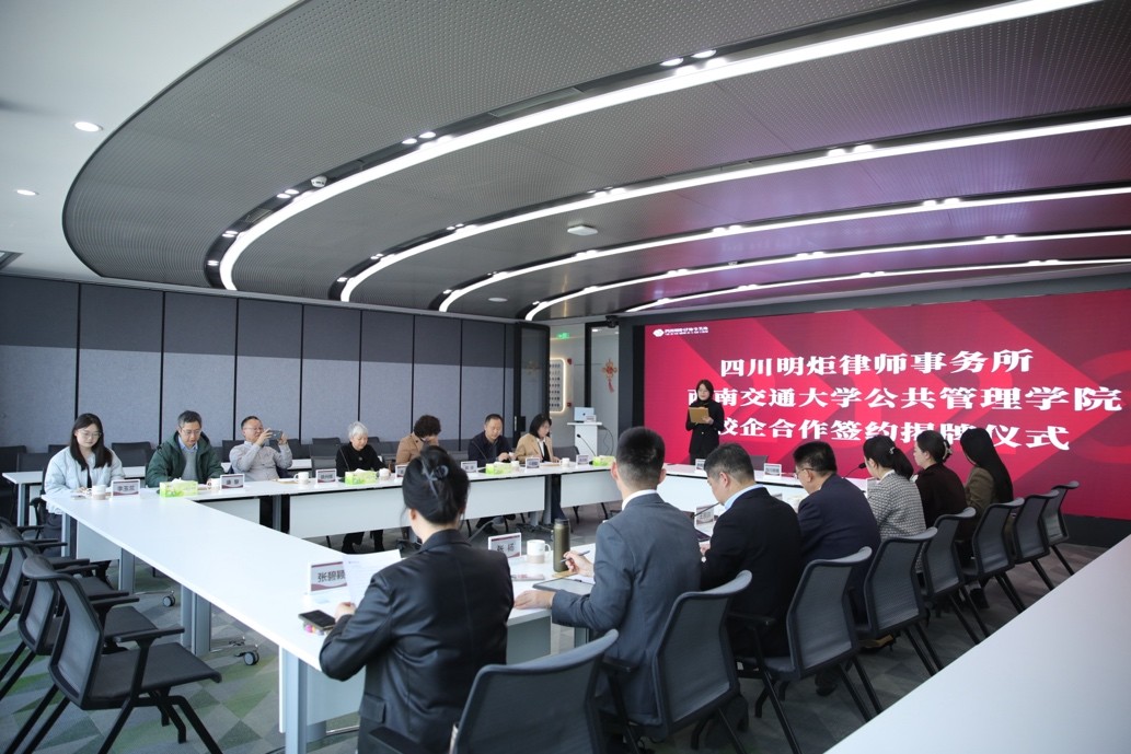 高凡在致辞中系统介绍了西南交通大学百余年的办学沿革,以及公共管理学院在学科建设、人才培养和实践教学方面的发展情况。她表示,公共管理学院高度重视实践导向教学,与具有深厚专业积淀和丰富实务经验的四川明炬律师事务所开展合作,将为学生成长和学科发展提供更加广阔、更加优质的平台。